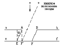 Первую попытку измерить скорость эфирного ветра предпринял Араго в 1810 г. Он решил обнаружить влияние движения Земли на преломление света, идущего от звезды. С этой целью он измерял разности зенитных углов одной и той же звезды, наблюдаемой в телескоп непосредственно и через призму, т.е. попытался наблюдать изменение угла преломления луча света от звезды к призме, когда Земля (а значит, и призма) двигалась к звезде и (через полгода) - от звезды. Араго ожидал измерить угол отклонения, равный, по его оценке, 2’.Но опыты дали отрицательный результат. И тогда Араго обратился к Френелю с просьбой объяснить этот неожиданный для него факт. В 1818 г. было опубликовано письмо Френеля к Араго, в котором Френель с единых позиций нашёл объяснение и отрицательного результата опыта Араго, и объяснение астрономической аберрации.