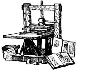 Истинный переворот в книгопечатании произвел Иоганн Гутенберг, который изобрел ручной словолитный прибор — аппарат для отливки слов и печатный станок (около 1445 г.). Этот станок (рис. 1.1) в течение нескольких веков являлся в Европе единственным печатным аппаратом.