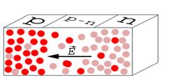 В соединенных вместе кусочках полупроводников n и p-типа ближайшие к границе электроны будут переходить из n-области в p-область, а ближайшие дырки – навстречу им, из p-области в n-область. Сам переход будет образован из положительно заряженных доноров, потерявших свои электроны, на n-стороне, и из отрицательно заряженных