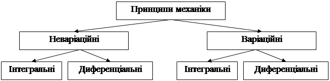 Усі принципи механіки поділяються на неваріаційні і варіаційні. І ті й інші, у свою чергу, підрозділяються на диференціальні й інтегральні принципи (див. схему).