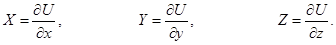 Нехай вільна матеріальна точка з масою т рухається під дією сили, що має силову функцію U (х, у, z, t ). Проекції сили на осі координат дорівнюють: