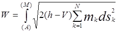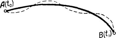 Отже, поряд з дійсним рухом вільної матеріальної точки, який відбувається між положеннями А і В за проміжок часу ( t 0 , t 1 ), розглядатимемо нескінченно близькі до дійсного можливі її рухи, які всі відбуваються між тими самими положеннями А та В, між якими відбувається дійсний рух, і за той самий проміжок часу ( t 0 , t 1 ) .