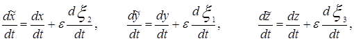 де час t змінюється від моменту t 0 до моменту t 1 . Швидкість точки в уявлюваному русі визначається трьома похідними по часу від координат