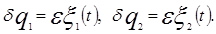 У випадку невільної матеріальної точки сформульовані вище в п.1.1. умови, які визначають клас кінематично можливих уявних рухів, слід доповнити ще однією: уявний рух точки повинен бути узгоджений з зв'язками, не повинен порушувати їх[5] . Тому всі попередні результати справедливі і для руху невільної матеріальної точки, якщо тільки в рівняннях руху точки використано незалежні узагальнені координати, які позначимо q1 , q2 (при одній ступені вільності матимемо лише одну координату q ). У цьому випадку, якщо дійсний рух точки визначається незалежними координатами q1 ( t) , q2 ( t) , то, аналогічно до попереднього, уявний кінематично можливий її рух буде характеризуватись функціями