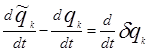 Випадок системи не відрізняється принципово від з'ясованого вище випадку однієї матеріальної точки. Нехай дійсний рух невільної голономної механічної системи з п ступенями вільності визначається п незалежними координатами qk ( t) , ( k=1, 2, ..., п) . Уявний кінематично можливий її рух визначатиметься варійованими координатами