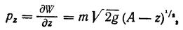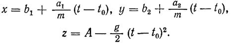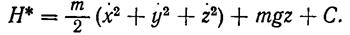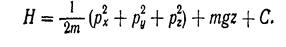 Як узагальнені координати вибираємо декартові координати: q1 = χ , q2 = у, q3 = z . Відповідні ним узагальнені імпульси наступні: p1 = рx , р2 = ру , р3 = рг . Точка вільна, тому узагальнена механічна енергія Н* дорівнює повній механічній енергії Ε == Т + Π. Направляючи декартову вісь Оz по вертикалі вгору, знаходимо