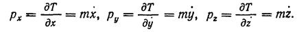 Залежності між узагальненими швидкостями й узагальненими імпульсами мають вигляд: