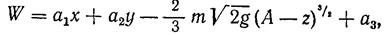З рівностей (е) випливає, що функція W лінійно залежить від координат χ і y . Тому рішення рівняння (d) шукаємо у вигляді: