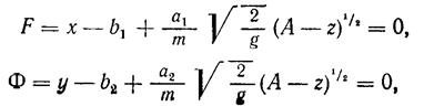 Тут рівності (i) — проміжні інтеграли, що визначають узагальнені імпульси розглянутої точки. Геометричні інтеграли (j) визначають сімейство просторових кривих — можливих траєкторій точки, що є лініями перетинання параболічних циліндрів з утворюючими, рівнобіжними осям Оу й Ох відповідно. Кінематичний інтеграл (k) дозволяє визначити кінематичні рівняння руху точки: