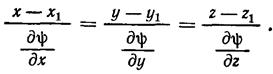 Рівняння нормалі до поверхні, яка описується рівнянням (n),