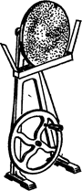 На центробежной машине укрепляется вертикально фанерный круг диаметром 18—20 см. Нижняя его часть (сегмент) погружается в сосуд с подкрашенной водой (можно использовать сосуд от прибора по теплоемкости) (Рис. 1). При вращении круга центробежной машины струи воды летят по направлениям касательных к кругу.