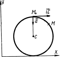 — постоянные величины, то модуль при равномерном движении тела по окружности остается все время неизменным. Однако отсюда еще нельзя сделать заключение, что такое движение равноускоренное. Так как в процессе равномерного движения тела по окружности вектор ускорения направлен по радиусу к центру, то непрерывно изменяется его направление. Таким образом, равномерное движение тела (точки) по окружности есть движение с переменным ускорением; оно не является равноускоренным
