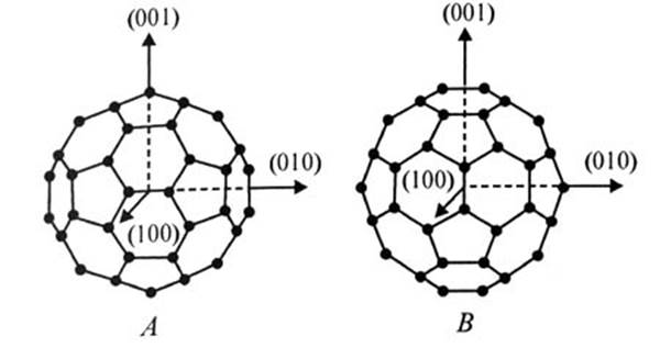 Упорядочение в простой кубической фазе не является полным, поскольку возможны две ориентации молекул, в которых молекулы повернуты на 38 или 98° относительно оси [111]. Насыщенные электронами межпентагонные связи могут быть направлены на бедные электронами грани пентагонов (Р-ориентация) или гексагонов (H-ориентация). Эти две ориентации почти одинаковы энергетически. Однако они имеют различную постоянную решетки. Этим объясняется маленький коэффициент термического расширения фуллерита: расширение сопровождается реориентацией. Все перечисленные фазы претерпевают огромные изменения при приложении давления. Давление меняет расстояние и, следовательно, интермолекулярные взаимодействия. Изучение влияния давления на ориентационное поведение С60 выявило три основных момента: