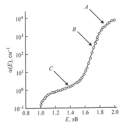 В области В край поглощения хорошо описывается экспоненциальной зависимостью Урбаха