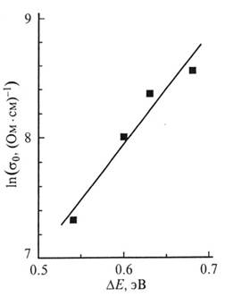 Рисунок 10. Зависимость префактора проводимости от энергии активации.