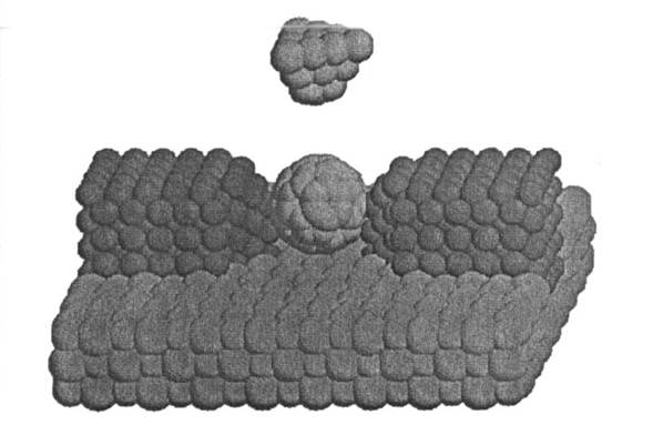 Были разработаны физические принципы создания аналога транзистора на одной молекуле фуллерена, который может служить усилителем наноамперного диапазона (рис. 12 ). Два точечных наноконтакта расположены на расстоянии порядка 1—5 нм по одну сторону молекулы С60. Один из электродов является истоком, другой играет роль стока. Третий электрод (сетка) представляет собой маленький пьезоэлектрический кристалл и подводится на ван-дер-ваальсово расстояние по другую сторону молекулы. Входной сигнал подается на пьезоэлемент (острие), деформирующий молекулу, расположенную между электродами — истоком и стоком, и модулирует проводимость интрамолекулярного перехода. Прозрачность молекулярного канала токопротекания зависит от степени размытия волновых функций металла в области фуллереновой молекулы. Простая модель этого транзисторного эффекта — это туннельный барьер, высота которого модулируется независимо от его ширины, т. е. молекула С60 используется как природный туннельный барьер. Предполагаемые преимущества такого элемента — малые размеры и очень короткое время пролета электронов в туннельном режиме по сравнению с баллистическим случаем, следовательно более высокое быстродействие активного элемента. Рассматривается возможность интеграции, т. е. создания более чем одного активного элемента на молекулу С60.