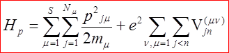 Обозначив через положение j-й частицы сорта , а через ее импульс, гамильтониан для такой системы можно записать следую-щим образом: