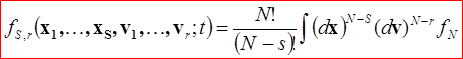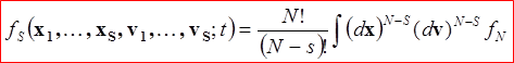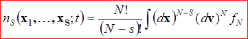 Множитель N!/(N-s)! является удобным по следующим причинам. Если интерпретировать f N как вероятность, то функция f s определенная без такого множителя, соответствовала бы вероятности нахождения определенной частицы 1 в точке (x1 ,v1 ), частицы 2 в точке (x2 ,v2 ) и т. д. Однако в больших физических системах из одинаковых частиц все частицы равноправны; данные макроскопические свойства определяются набором частиц в целом независимо от их нумерации. Поэтому удобно умножать интеграл от функции f N на такой множитель, который представлял бы число способов выбора s частиц из полного числа частиц N.