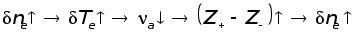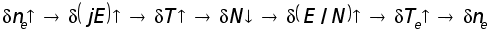 Подстановка таких выражений в уравнения дает связь между амплитудами возмущений различных параметров (ne , Тe), дисперсионное соотношение, связывающее комплексную частоту w c k. Если Re i>0 возмущения будут нарастать по экспоненциальному закону. Характерное время развития неустойчивости . Если , возмущения затухают, то есть состояние устойчиво.