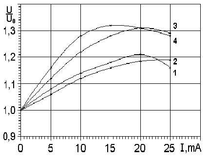 Опыт показывает, что в разряде, контролируемом диффузией, ВАХ изобразится не горизонтальной прямой, а слегка падающей. Это является следствием нагревания газа. У оси плотность тока больше, чем у стенок, так как там больше концентрация электронов (Е одинаково по сечению). Энерговыделение и температура газа на оси выше, чем у стенок. Поскольку частота ионизации фактически зависит не от Е/p, а от E/N, для поддержания ионизации в основной части токового сечения требуется меньшее поле, уменьшается и напряжение [15].