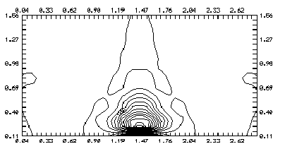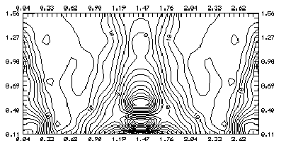 Для расчета полей показателя преломления по интерферограммам была написана компьютерная программа (см. приложение 1). За основу был взят метод Шардина, но в отличие от него сечение разбивалось на столько зон, сколько было точек в сечении. Интерполировалась не сама фаза, а вычисленное изменение показателя преломления. При экстраполяции n принимался равным нулю.