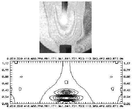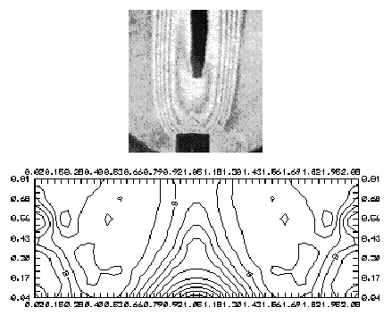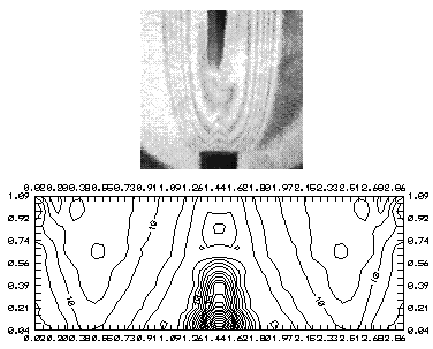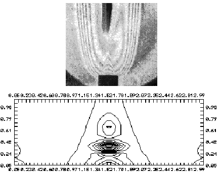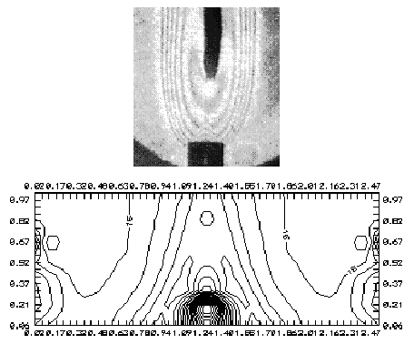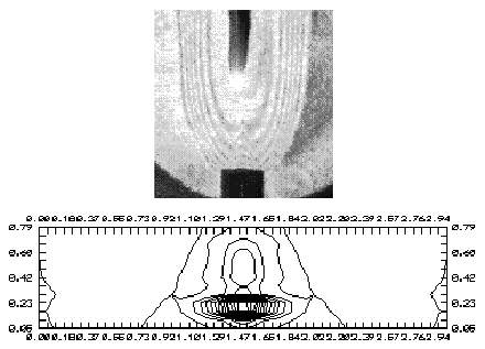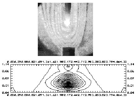 Вычисления изменения нормальной скорости горения в зависимомти от тока разряда производилось с фотографических снимков и видеоизображений. Снимки проводились с достаточно близкого расстояния. По интерферограммам рассчитывались распределения показателя преломления среды по радиусу в различных сечениях для разных расходов и составов горючей смеси.