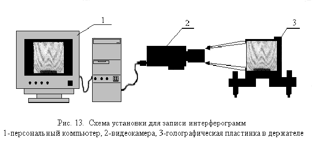 Для обработки полученных видеоизображений на компьютере была собрана следующая установка, изображенная на рис. 13.