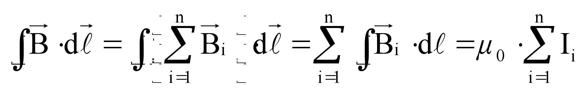 Магнитное поле, созданное несколькими токами или движущимися зарядами равно векторной сумме полей, создаваемых каждым током или движущимся зарядом в отдельности: