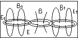 Электромагнитные волны были впервые экспериментально получены Герцем в 1887г. В его опытах ускоренное движение электрических зарядов возбуждались в двух металлических стержнях с шарами на концах (вибратор Герца). Колебания электрических зарядов в вибраторе создают электромагнитную волну. Только колебания в вибраторе совершает не одна заряженная частица, а огромное число электронов, движущихся согласовано. В электромагнитной волне векторы Е и В перпендикулярны друг другу. Вектор Е лежит в плоскости, проходящей через вибратор, а вектор В перпендикулярен этой плоскости. Излучение волн происходит с максимальной интенсивностью в направлении, перпендикулярном оси вибратора. Вдоль оси излучения не происходят.