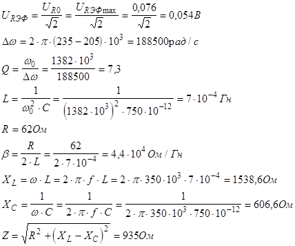 Исходные данные:Uвых =200 мВ, eЭФ =200 мВ. f Î[180;300] кГц.
