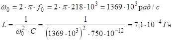= 220 кГц - частота резонанса.
