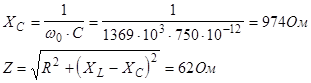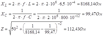 Можно сделать вывод, что при резонансной частоте XL »XC и величина импеданса цепи минимальна.
