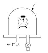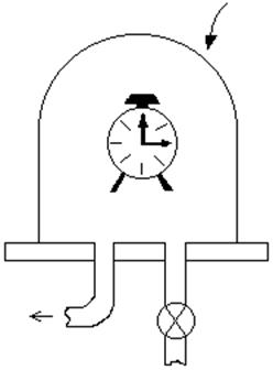 Звонящий будильник помещают под стеклянный колокол, из которого нсосом выкачивают воздух. По мере удаления воздуха из - под колокола звук от будильника становится все слабее и слабее, пока не пропадет совсем. Если открыть кран и впустить обратно под колокол воздух, то громкий звук будильника будет снова слышен. При всех этих манипуляциях , однако, мы все время видим будильник через стенки колокола , а следовательно, световые волны в отличие от звуковых могут распространяться и в пустом пространстве под колоколом , фактически лишенном воздуха.