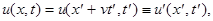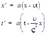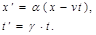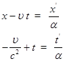 Таким образом, мы показали, что имеются следующие формулы преобразований координат x , t и x’, t‘ мгновенного точечного события в системах отсчета K и K’ :