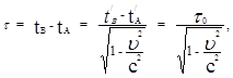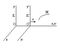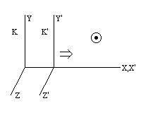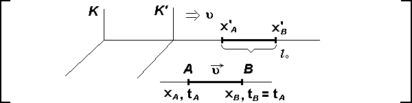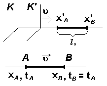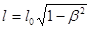 Если теперь, наоборот, взять стержень длины l0 , расположенный в “неподвижной” системе отсчёта K , и измерить его длину l’ в “движущейся” системе отсчёта K’ , то для этой длины, рассуждая аналогично, получаем соотношение