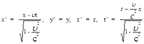 Таким образом, искомые формулы преобразования координат мгновенного точечного события имеют вид