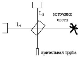 Оптический прибор-знаменитый интерферометр Майкельсона - размещался на тяжёлой каменной плите,которая плавала на ртути в бассейне в подвале здания.Ориентируя этот прибор либо плечом L1 либо плечом L2 вдоль направления движения Земли,не удалось наблюдать какого-либо различия в его показаниях (это различие должно было выразиться в смещении