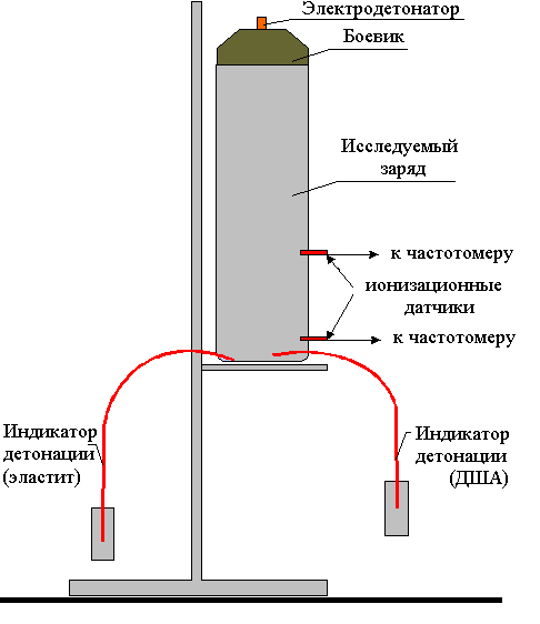 Рис. 2. Схема проведения испытаний зарядов ЭВВ.