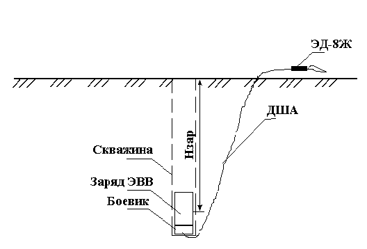 Рис.5. Схема расположения заряда в ЭВВ при оценке работоспособности по воронке выброса.