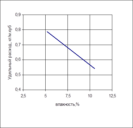 Рис.9. Зависимость удельного расхода ВВ от влажности грунта