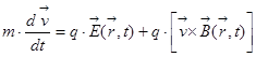 , движется в электромагнитном поле согласно этому уравнению. Видим, что сила, действующая на частицу со стороны электромагнитного поля, определяется двумя векторными полями: