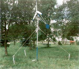 По сравнению с Европой и США ветроустановок в нашей стране выпускается намного меньше. Возможно, здесь сказывается недостаточная информированность потенциальных потребителей или относительная дешевизна жидкого топлива, однако изготовители ветровых генераторов в стране есть, и их продукция по качеству не уступает зарубежной. По конструктивным признакам выпускаемые установки делятся на две группы. К первой относятся установки мощностью до 1000 Вт. В качестве примера можно привести семейство установок, выпускаемых Санкт-петербургским предприятием ФГУП ЦНИИ “Электроприбор”. Это мобильные устройства с трехлопастным ветровым колесом диаметром 1,5 или 2,2 метра, монтаж которых настолько прост, что справиться с ним потребитель способен самостоятельно. В упакованном виде установка (без аккумулятора) размещается в двух ящиках общей массой 50 кг.