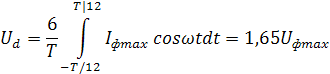 Среднее значение выпрямленного напряжения (период пульсации Т/6)