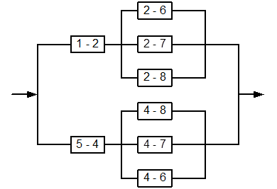| Вероятность работоспособного состояния pi | 0,95 | 0,95 | 0.95 | 0.85 | 0.85 | 0.85 |