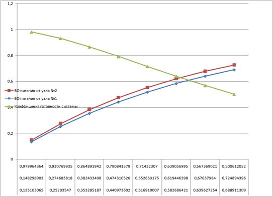 · Составить модель структуры сети для анализа надежности логико-вероятностным методом и определить значения ее показателей. Рассчитать и построить графики зависимости коэффициента готовности системы и вероятности отказа питания от каждого источника генерации на L последующих лет эксплуатации, с разбивкой по кварталам.