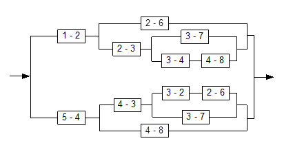 Для построения модели структуры сети с целью анализа надежности и определения значений ее показателей следует применить логико- вероятностный метод [2]. Метод основан на приложении алгебры логики к описанию состояний работоспособности и восстановления системы.