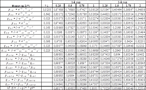 где λ - интенсивность отказов (ИО) одного элемента: условная плотность вероятности возникновения отказа невосстанавливаемого объекта на бесконечно малом интервале времени при условии, что до этого момента отказ объекта не произошел. Напомним, что для экспоненциального закона ИО постоянна, что позволяет получить простые расчетные выражения.