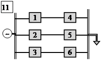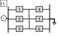 В этом выражении операция α 1 предполагает преобразование двух элементов х1 х4 в один эквивалентный структурный элемент (который так и обозначим - α 1 ); α 2 состоит из двух элементов x2 x5 , которыетоже будут преобразованы в один элемент - α 2 ; α 3 состоит из двух элементов x3 x6 , которыетоже будут преобразованы в один элемент – α 3 . При этом элементы α 1 , α 2 , α 3 образуют вместе три параллельно соединенных (в смысле надежности) элемента посредством операции β.
