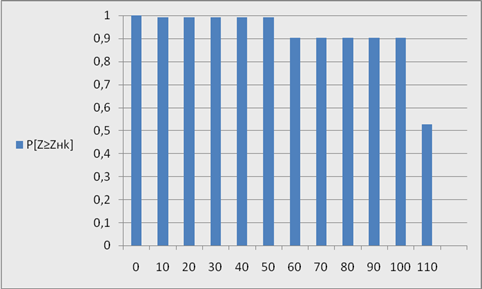 Из таблицы 2.3. следует, что при расчетной нагрузке 70 ед. вероятность безотказной работы установки P[Z ≥ 70] = 0,9893 соответствует заданному нормативному уровню Pнорм = 0,98.