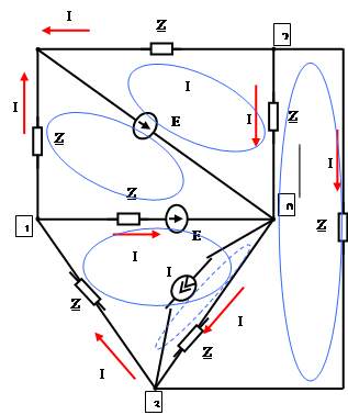 Рис.4. Схема электрической цепи подготовленной для расчета методом контурных токов.